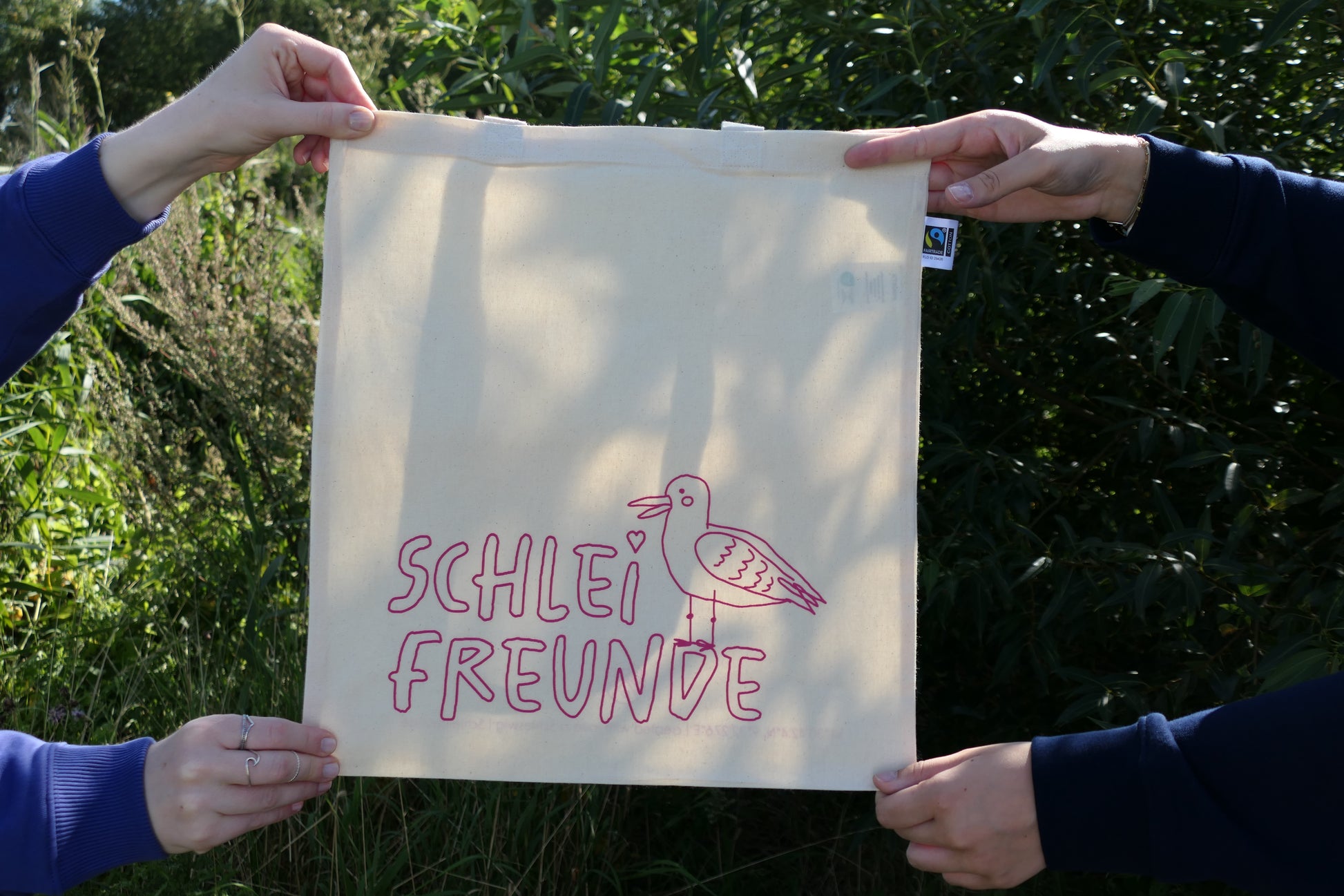 Das Schleimöwe-Logo ziert die Vorderseite des Jutebeutels, während auf der Rückseite die Koordinaten des Schloss Gottorf zu finden sind. Gefertigt aus 100 % Bio- und Fairtrade-Baumwolle, überzeugt die Tasche durch ihre naturbelassene Farbe und hohe Qualität. Mit Abmessungen von etwa 38 x 42 cm und langen Henkeln von ca. 70 cm bietet sie angenehmen Tragekomfort.