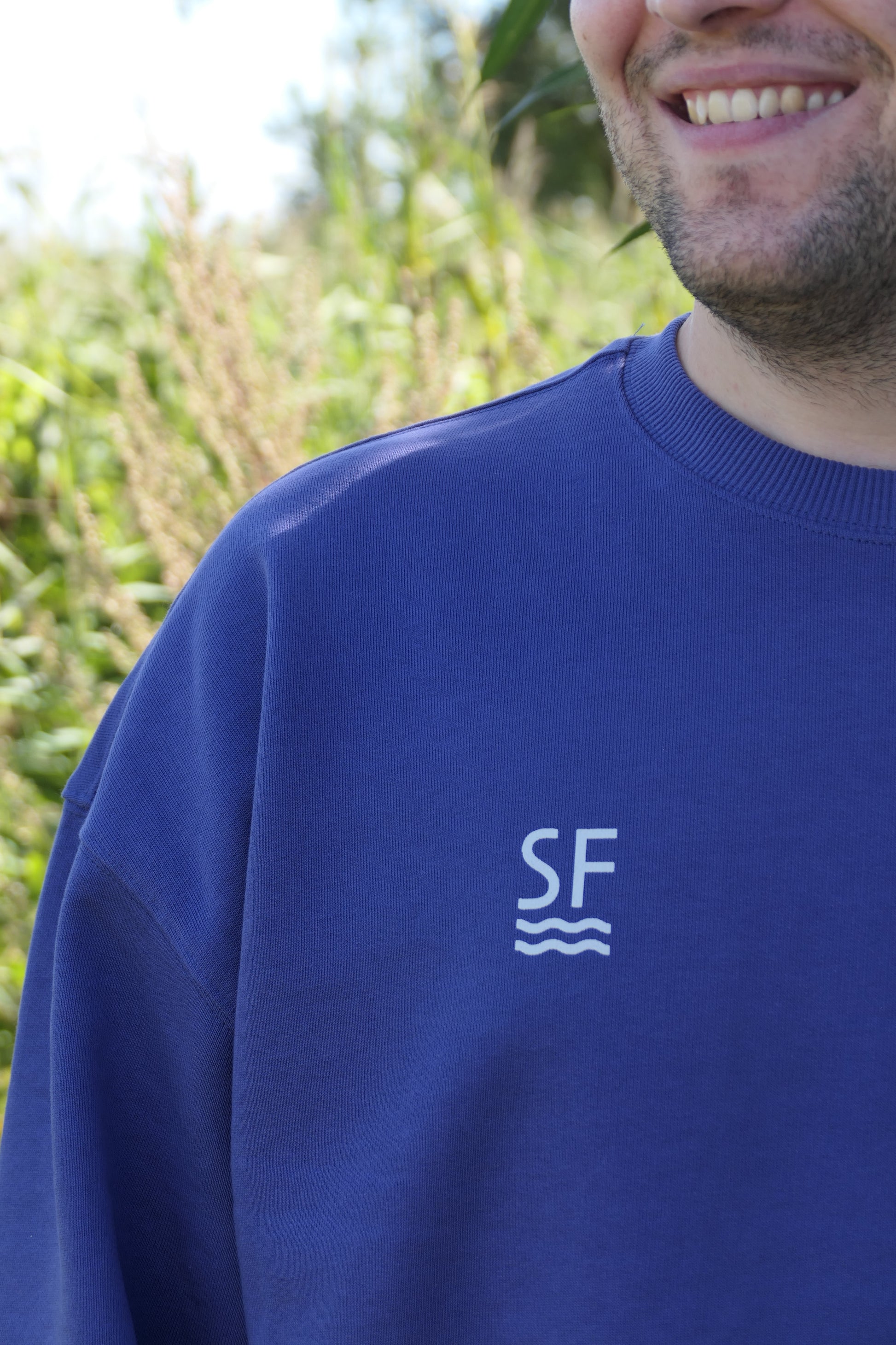 Das Sweatshirt in Lila präsentiert den SF-Schriftzug auf der Vorderseite und das Schleifreunde-Boot als Backprint in hellem Beige. Das unisex Oversize-Crewneck besteht zu 100 % aus gekämmter, ringgesponnener Bio-Baumwolle und garantiert so eine bequeme Passform sowie einen klassischen Rundhalsausschnitt. Mit einem Flächengewicht von 350 g/m² bietet das aufgeraute Material einen festen Griff bei gleichzeitig hohem Tragekomfort.