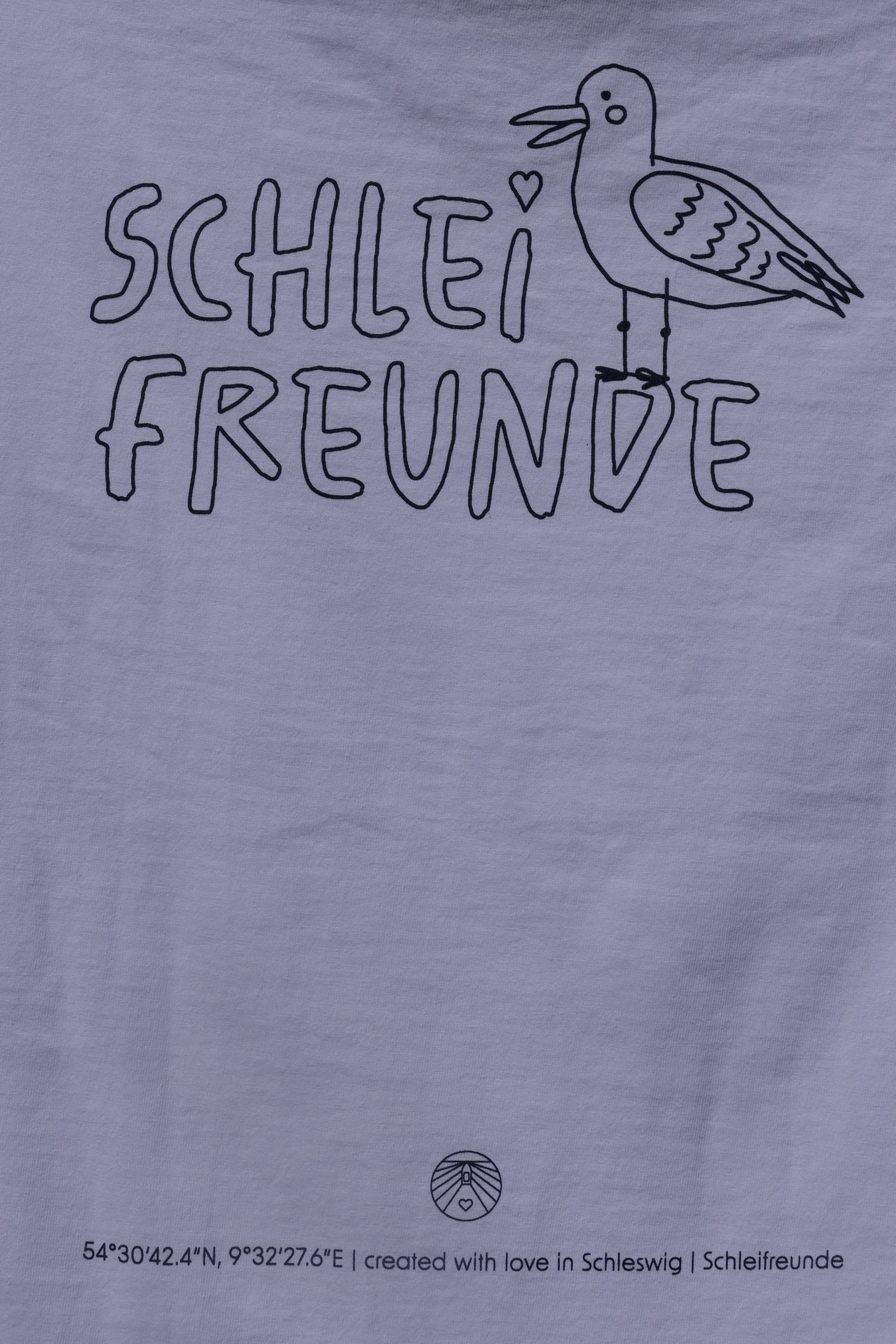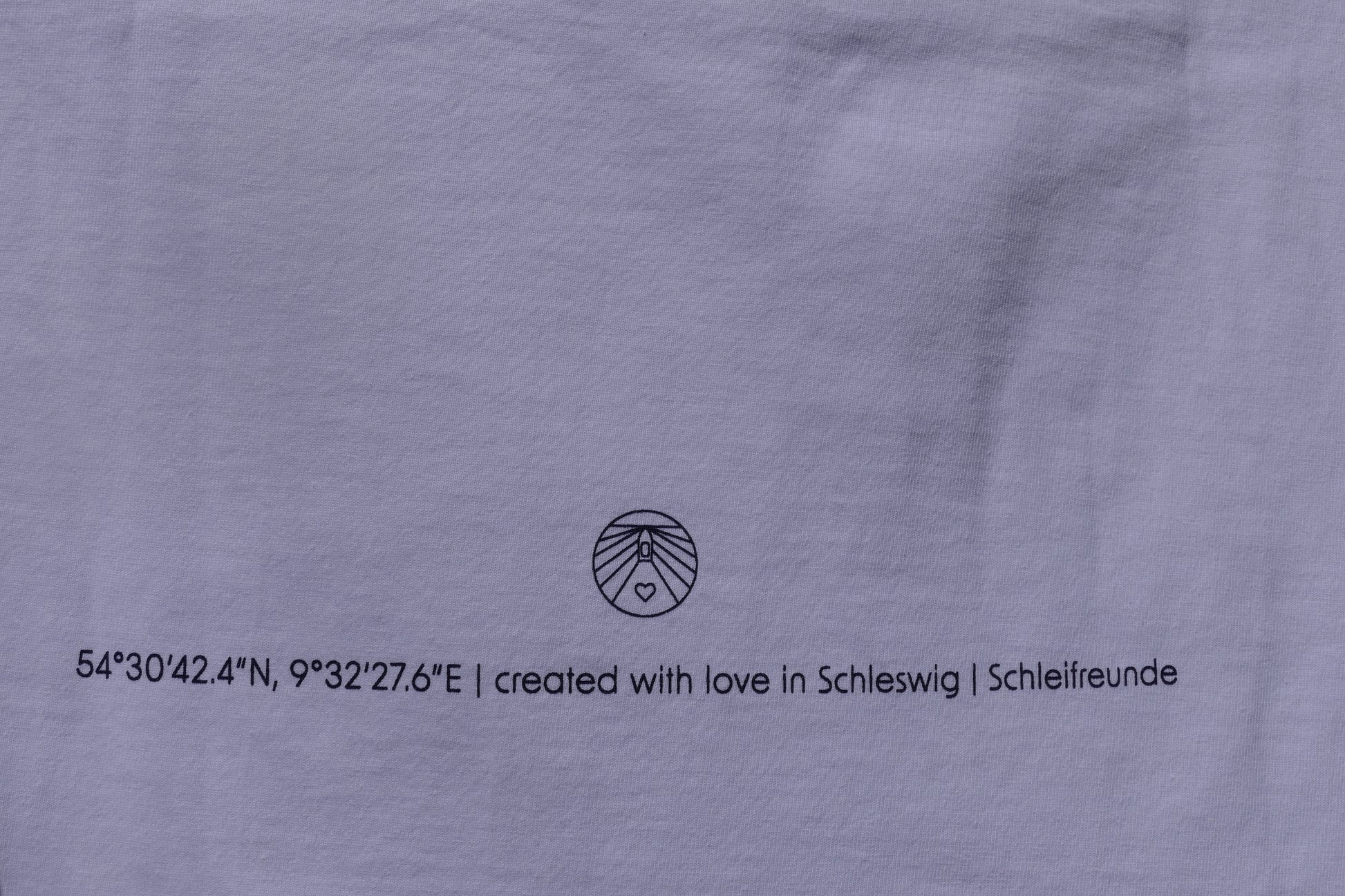 Das weiße Unisex T-Shirt präsentiert auf der Vorderseite die SF-Initialien, die Rückseite schmückt die Schleimöwe und die Koordinaten des Schloss Gottorf in dunkelblau. Das Modell besteht aus dichtem, schwerem Stoff und ist aus 100 % Bio-Baumwolle gefertigt, was eine nachhaltige Produktion gewährleistet. Mit seinem Oversized-Schnitt, dem klassischen Rundhalsausschnitt und den weit geschnittenen Ärmeln bietet es hohen Tragekomfort. Das Singlejersey-Gewebe mit 240 g/m² sorgt für eine feste Haptik und macht das Shirt besonders robust und langlebig.