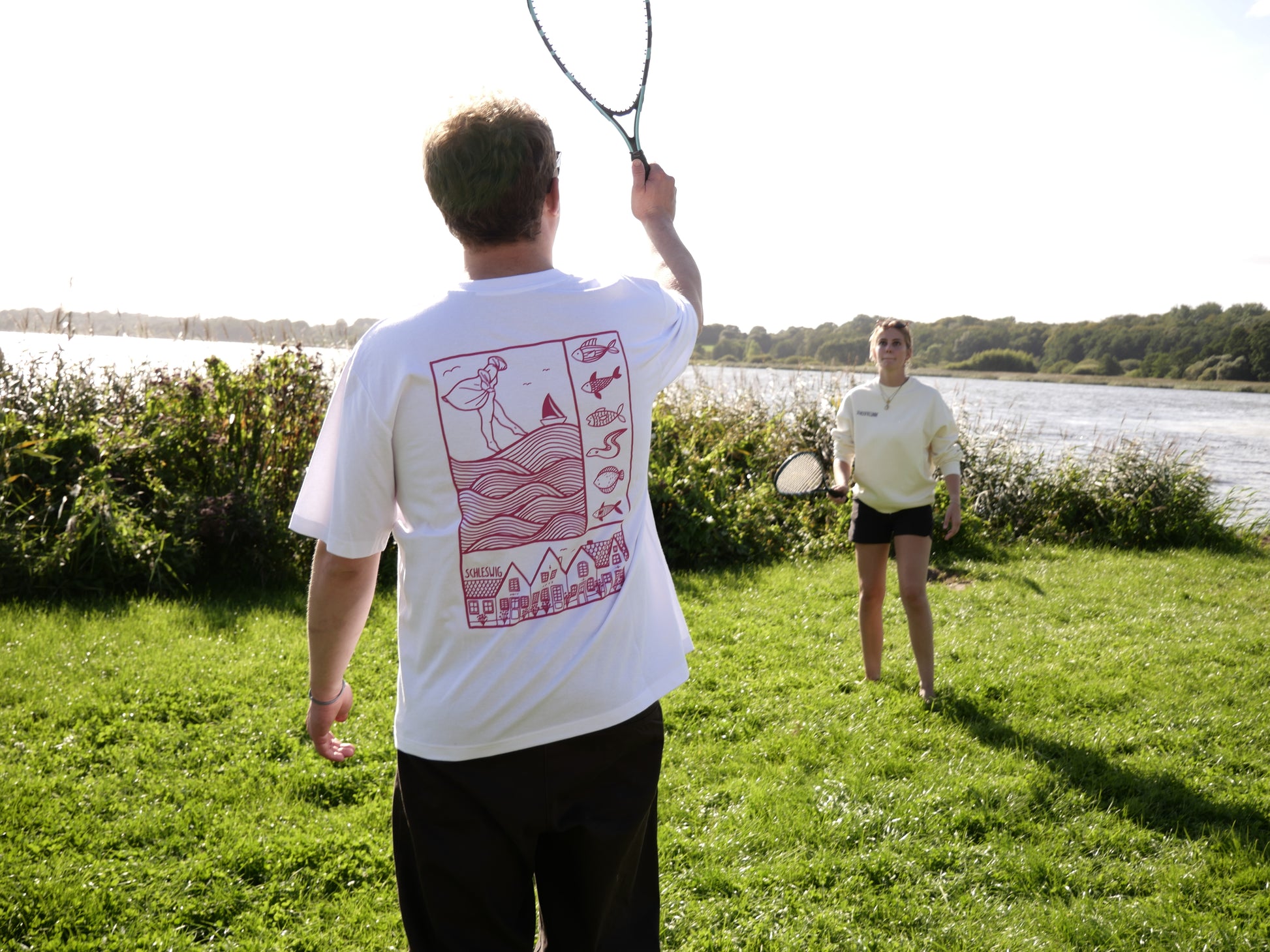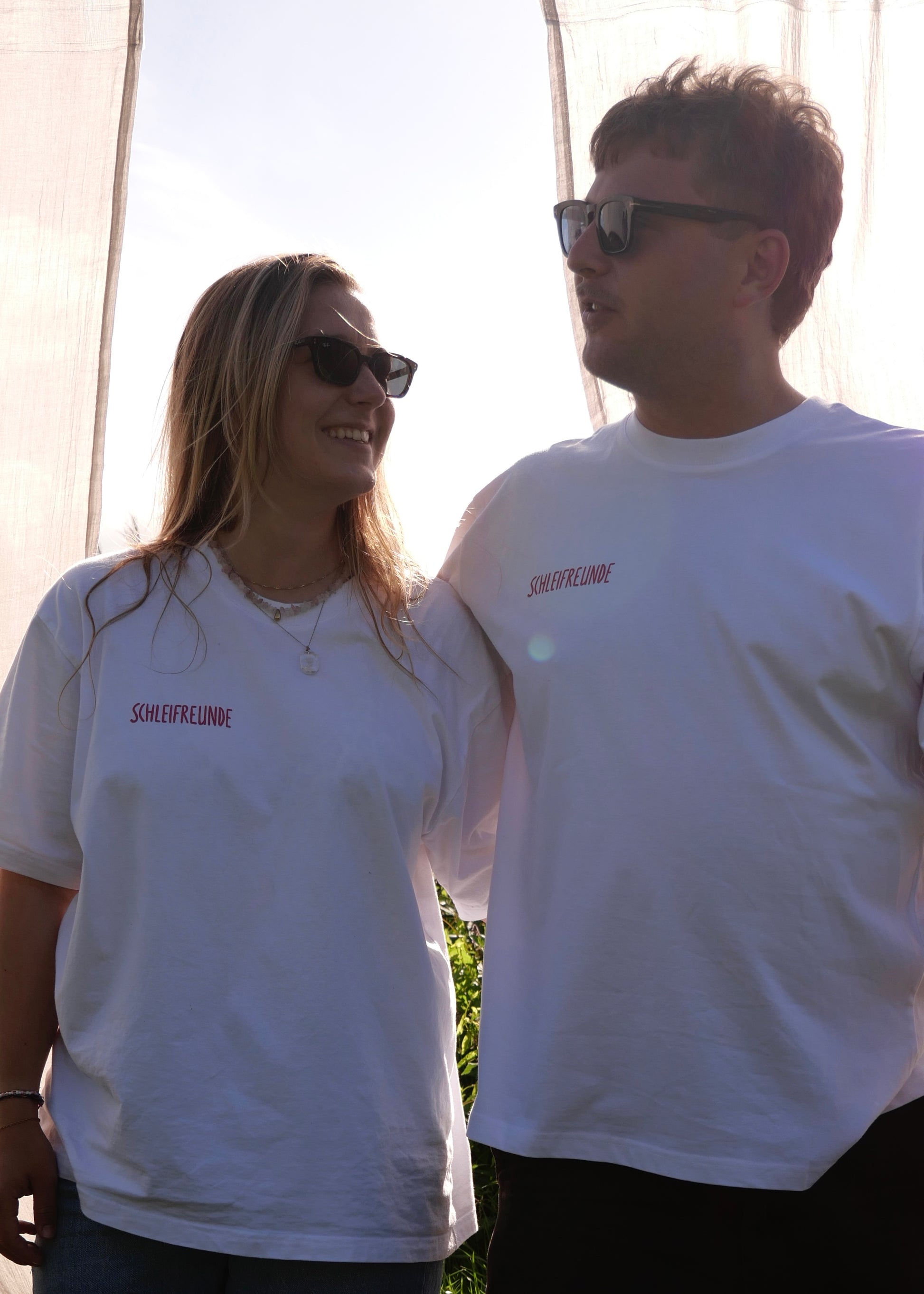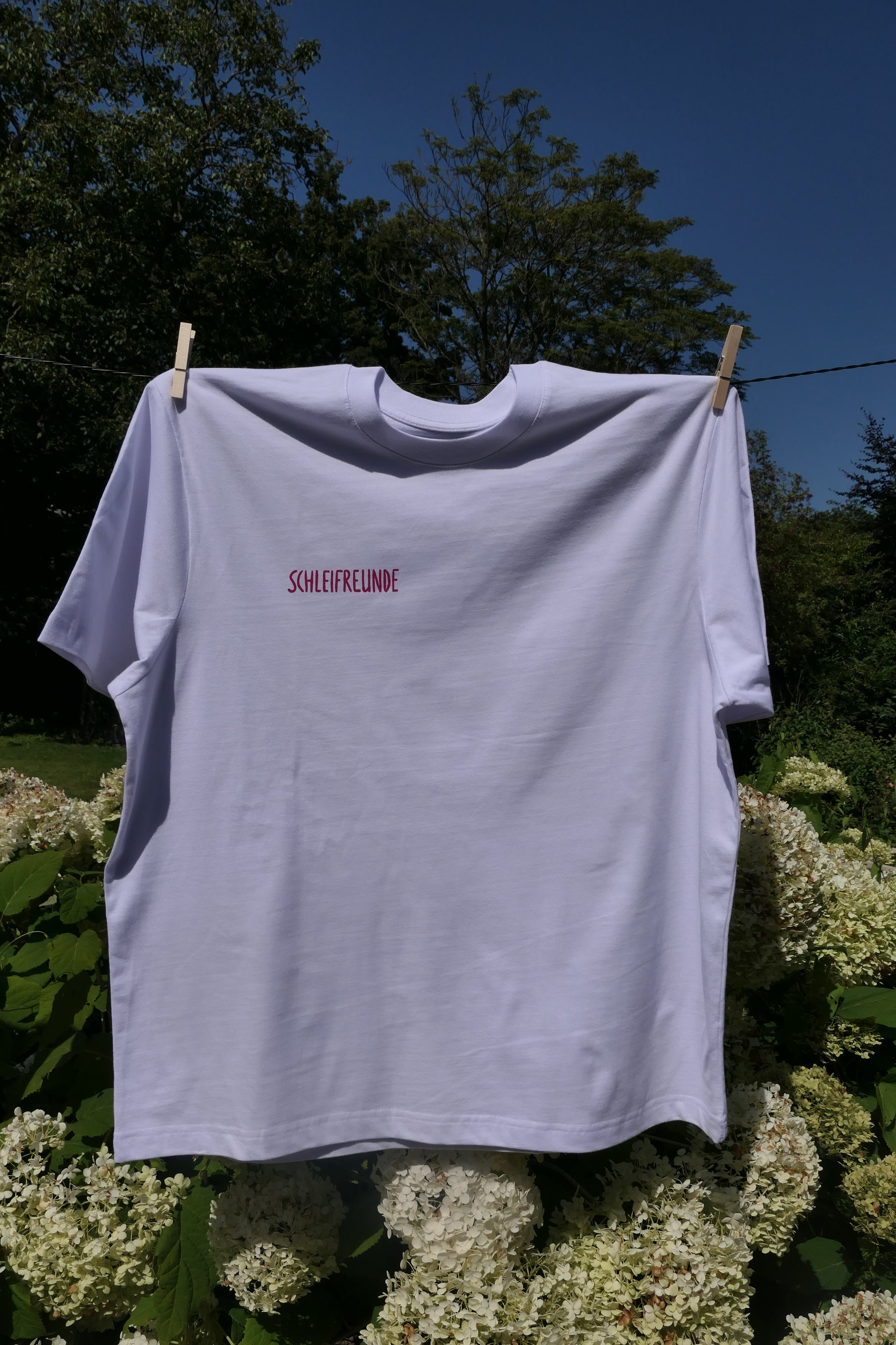 Das weiße Premium Unisex-T-Shirt präsentiert sich mit dem Schleifreunde-Schriftzug auf der Vorderseite und dem pinkfarbenen Schleswig-Motiv auf der Rückseite. Gefertigt aus 100 % langlebiger, fair produzierter Baumwolle, bietet es eine hochwertige Haptik. Die seitlichen Nähte garantieren eine formbeständige Passform, während die abgefallene Schulterpartie bewusst für einen oversized Look sorgt. Die hochwertige Materialauswahl und der 220 g/m² Baumwollstoff sorgen für Langlebigkeit und ein angenehmes Tragegefühl.